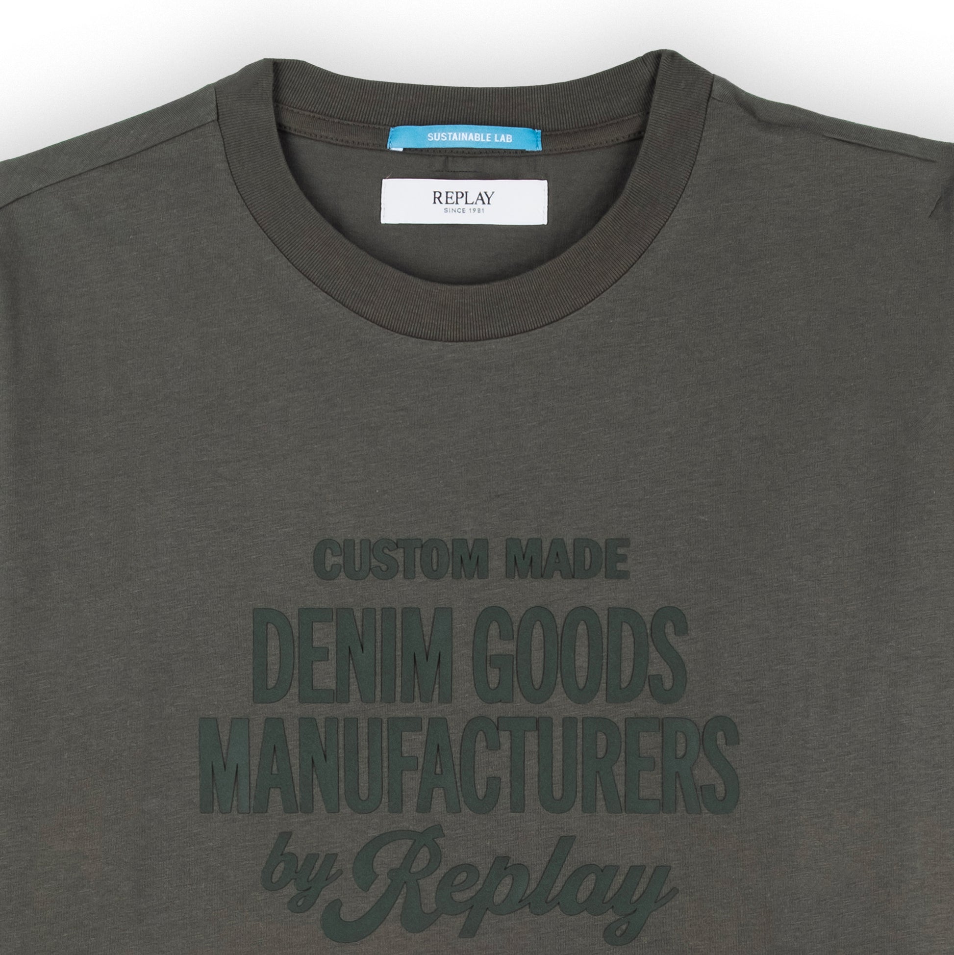 T-shirt masculina da marca Replay em verde militar, ideal para um look casual e moderno. Fabricada com material de alta qualidade, apresenta estampa central que destaca o estilo urbano. Confortável e durável, perfeita para qualquer ocasião