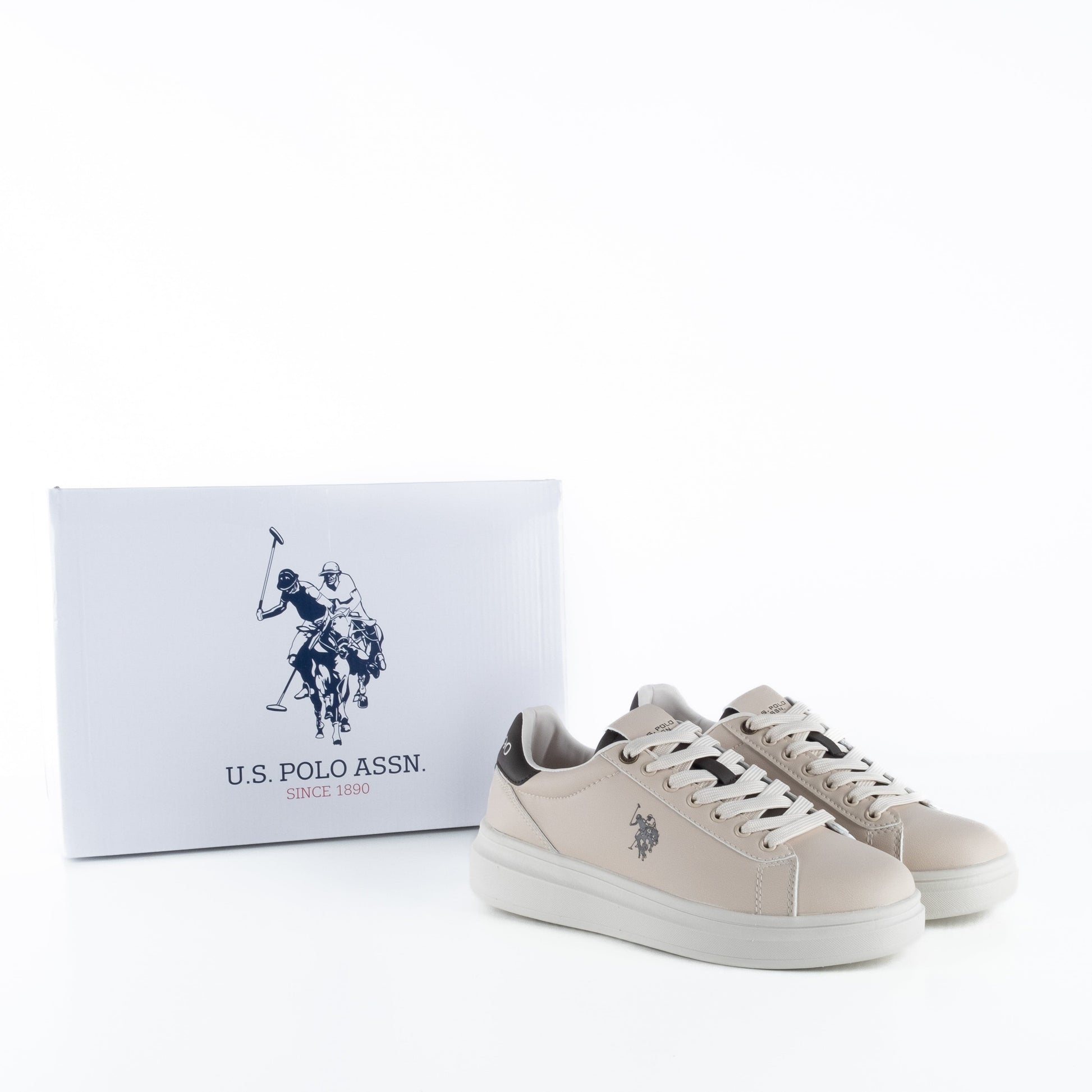 Estilo descontraído e versátil com estes ténis US Polo em bege. O logo preto na lateral e o pormenor “Since 1890” no calcanhar dão-lhe um toque urbano e moderno.
