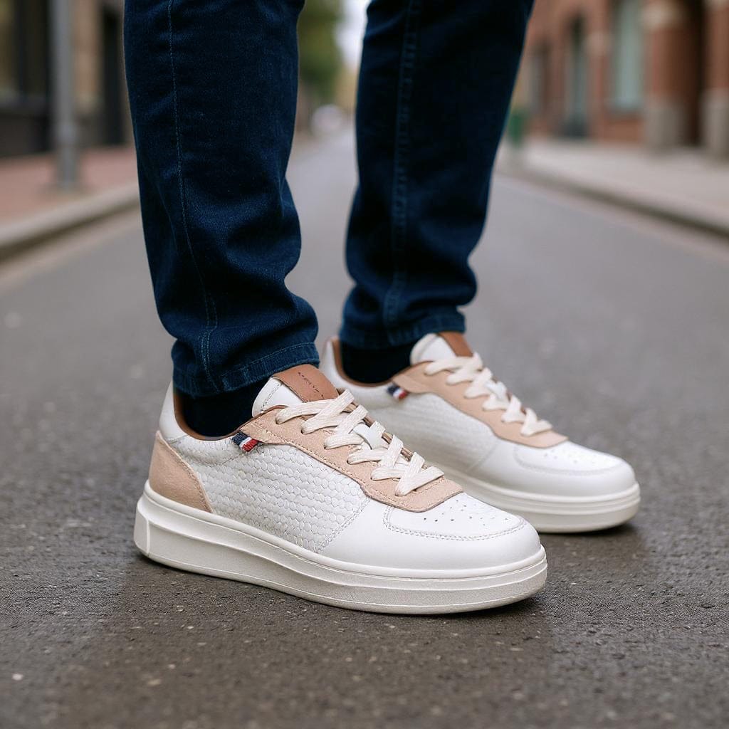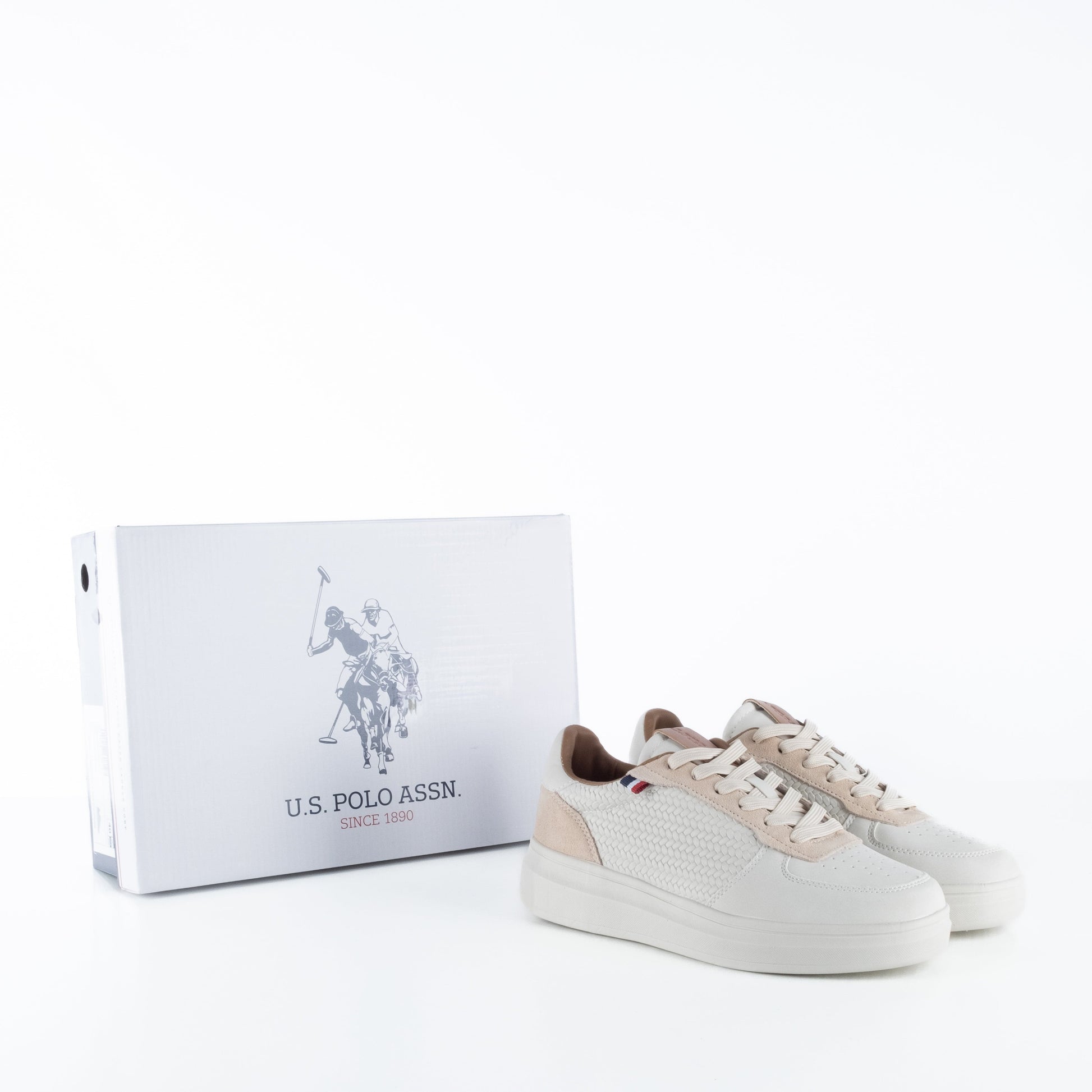 Com um design moderno e minimalista, estes ténis da US Polo combinam branco e bege num estilo leve e elegante. A sola alta proporciona conforto extra, ideal para o dia a dia urbano.