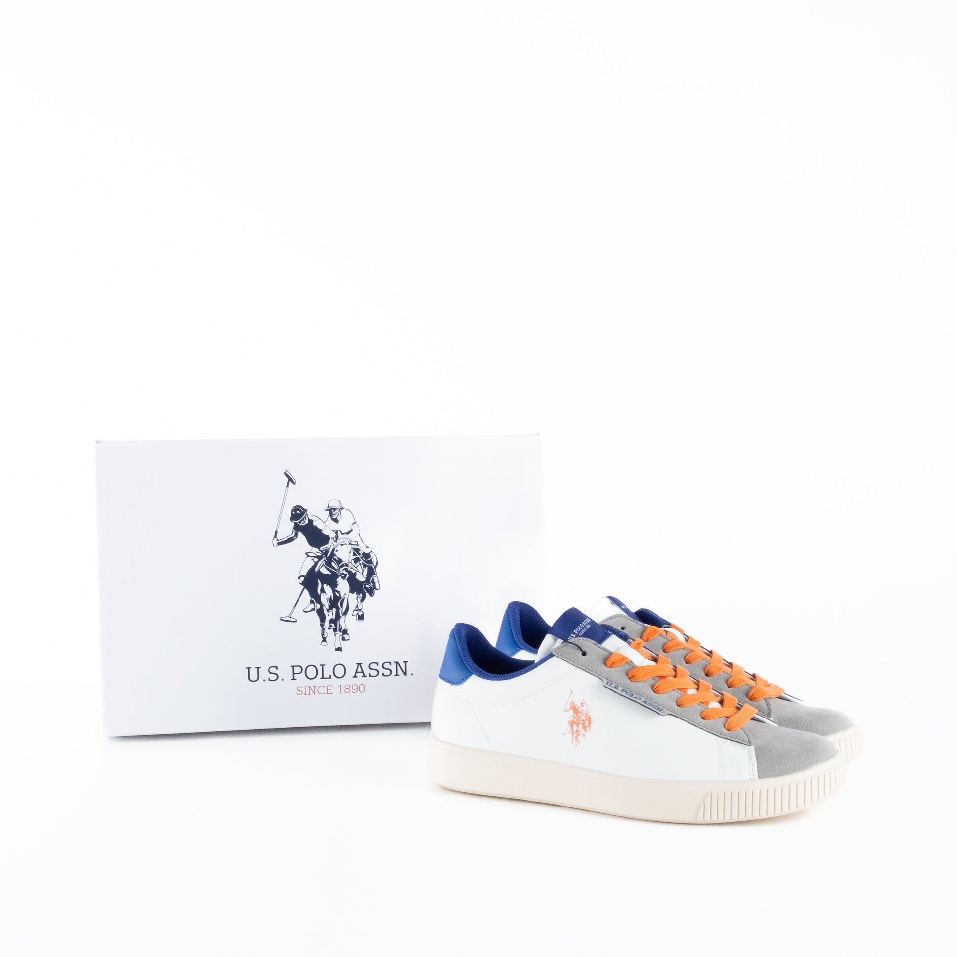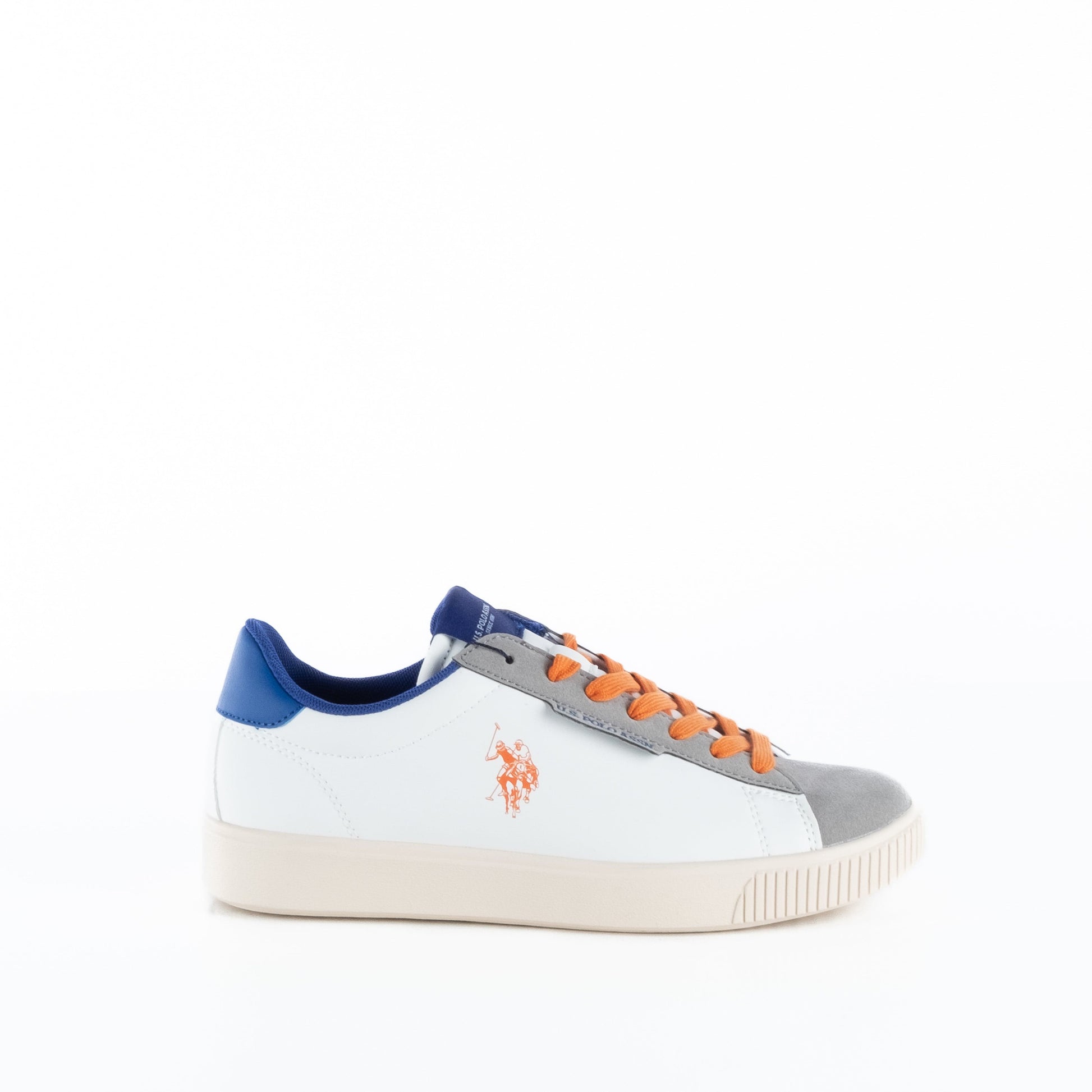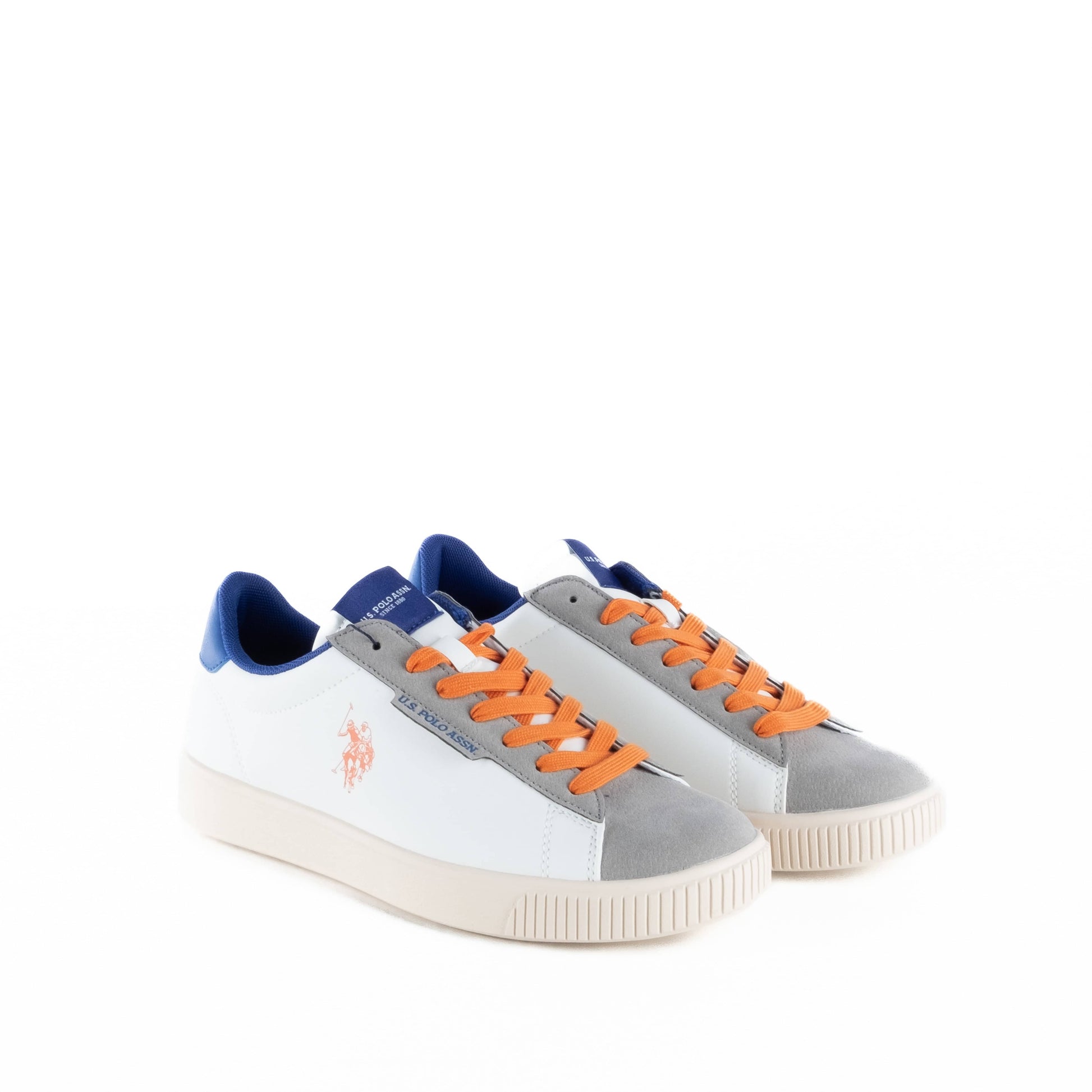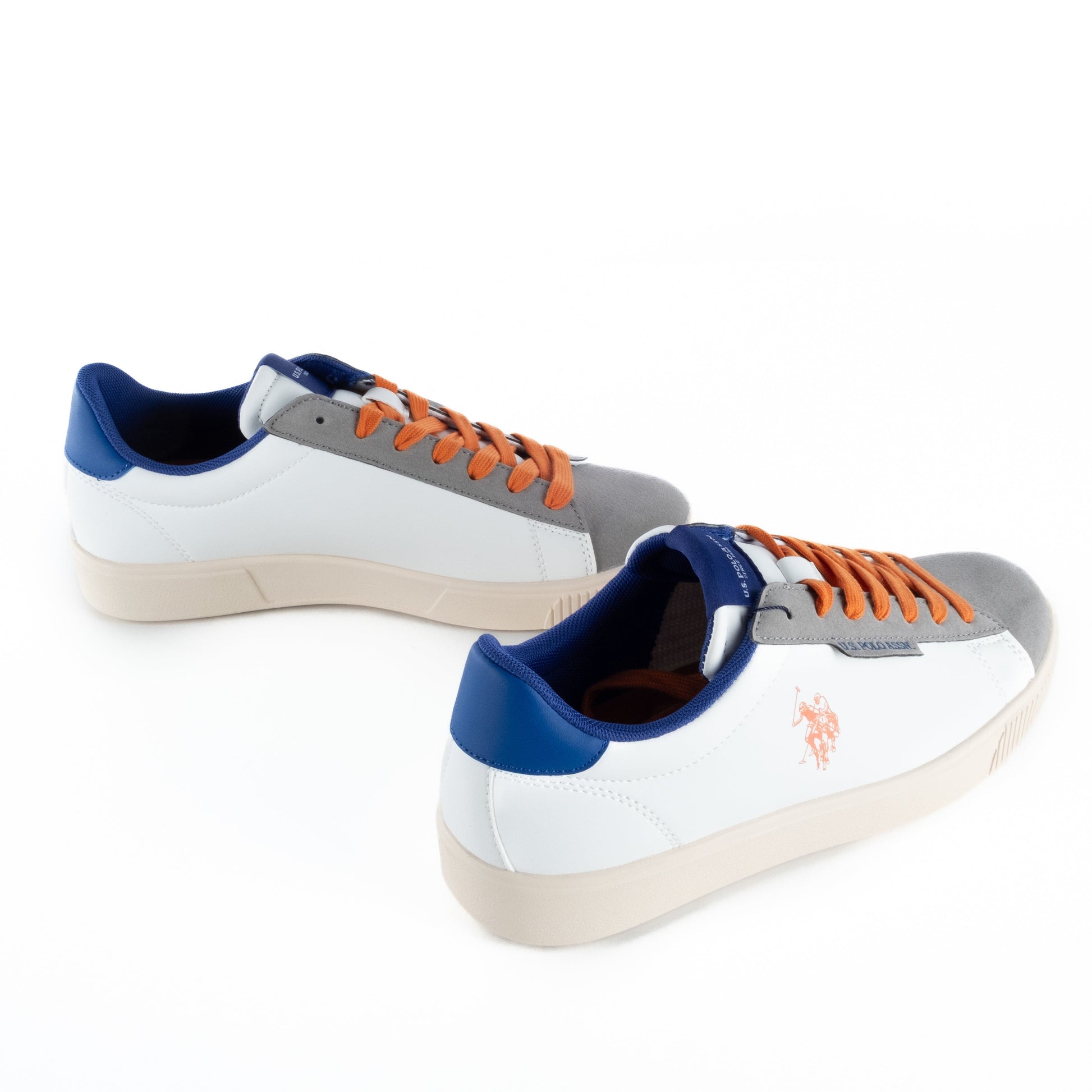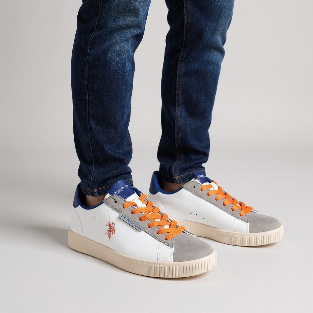 Estes ténis US Polo são a combinação perfeita entre desporto e estilo. O design moderno mistura tons neutros com apontamentos vibrantes como os atacadores laranja, tornando-os uma escolha ousada para quem gosta de marcar presença. Confortáveis e versáteis, ideais para o dia a dia ou momentos casuais.