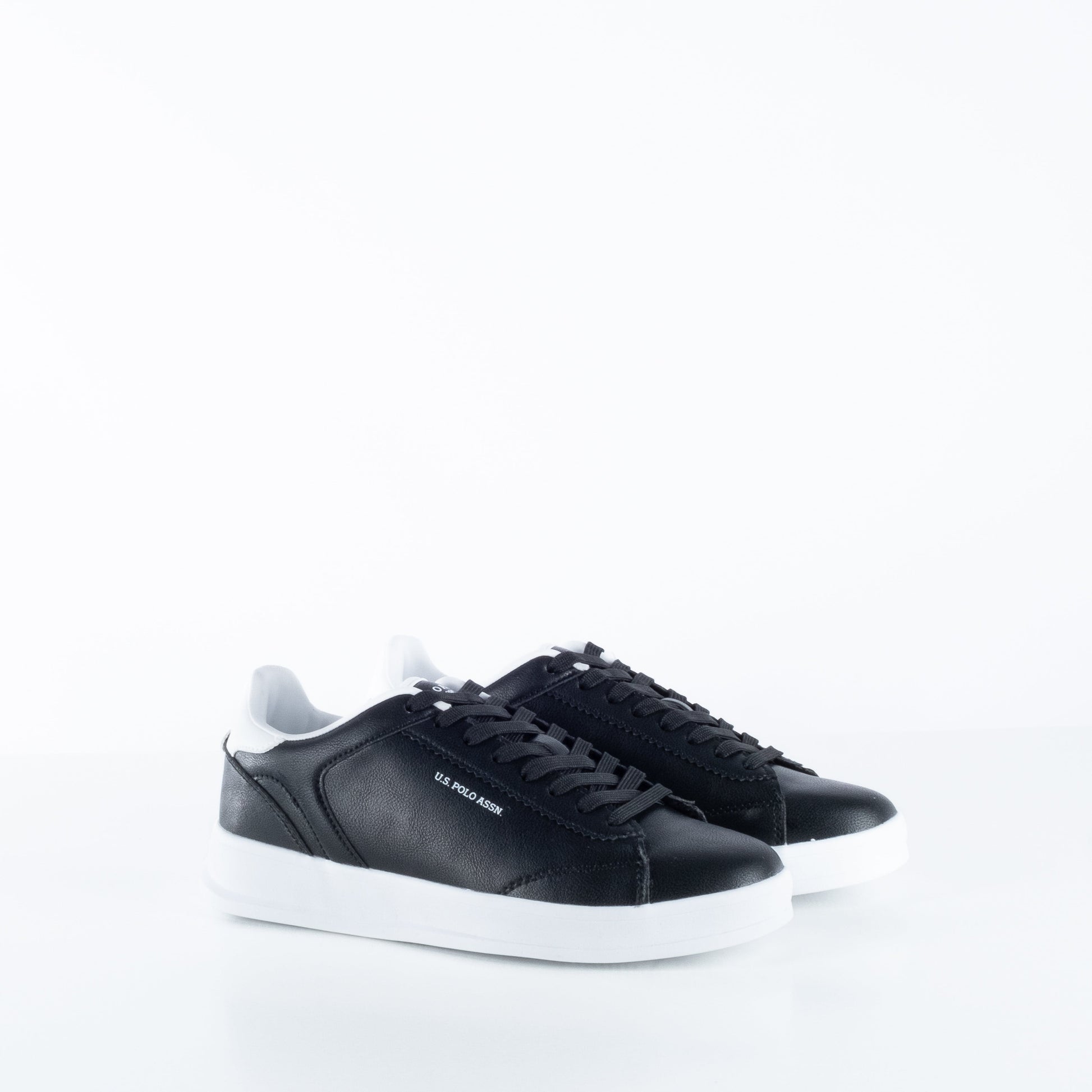 Um clássico moderno: estes ténis US Polo em preto com detalhes brancos destacam-se pelo design minimalista e versatilidade. A sola branca confere contraste e um look urbano ideal para o dia a dia.