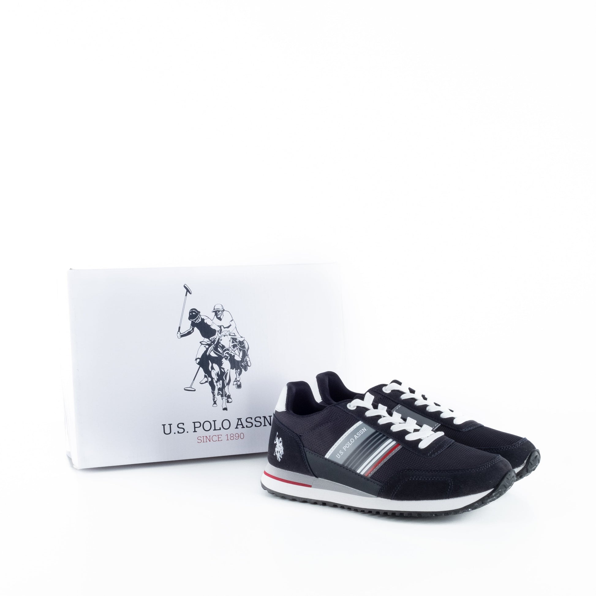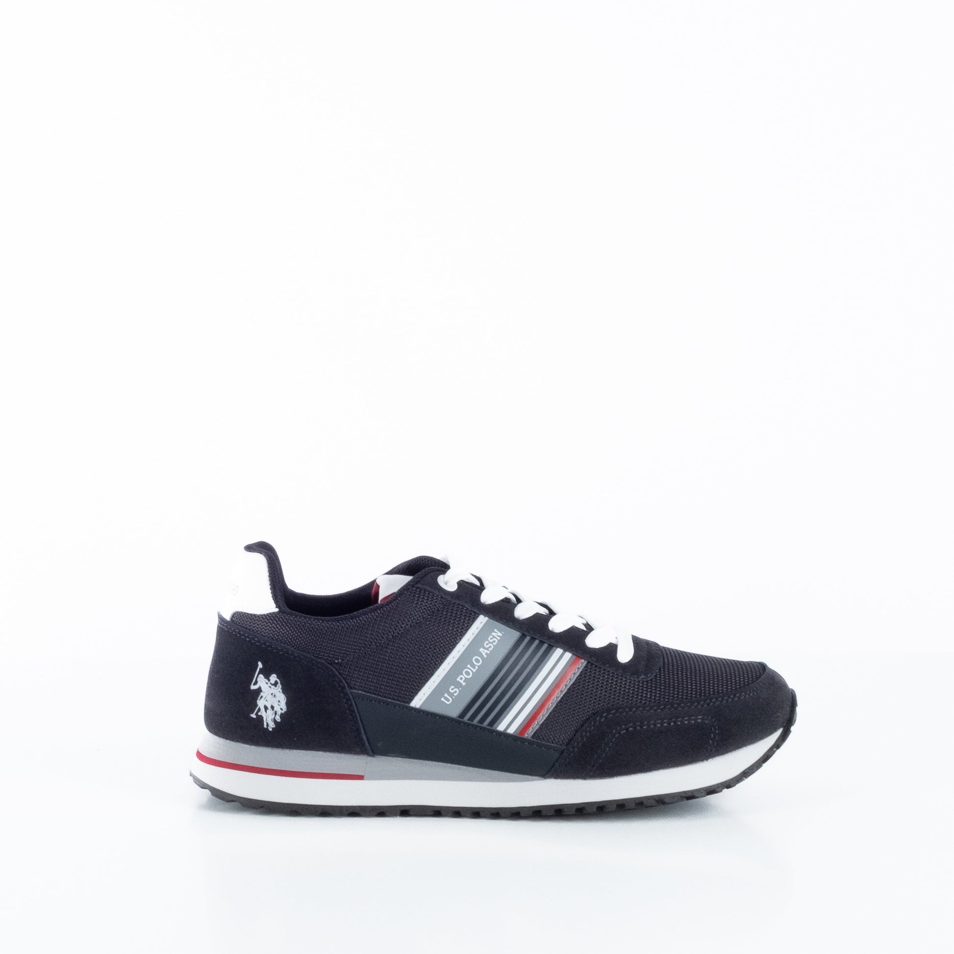 Estes ténis da US Polo oferecem um visual urbano moderno com toque atlético. Confeccionados em preto com detalhes contrastantes em branco e vermelho, destacam-se pelo logótipo lateral bordado e pelas riscas decorativas. A sola leve e antiderrapante garante conforto em cada passo. Cor: Preto com branco e vermelho. Composição: Têxtil e sintético. Detalhes: Atacadores brancos, logótipo bordado, riscas laterais e puxador traseiro.