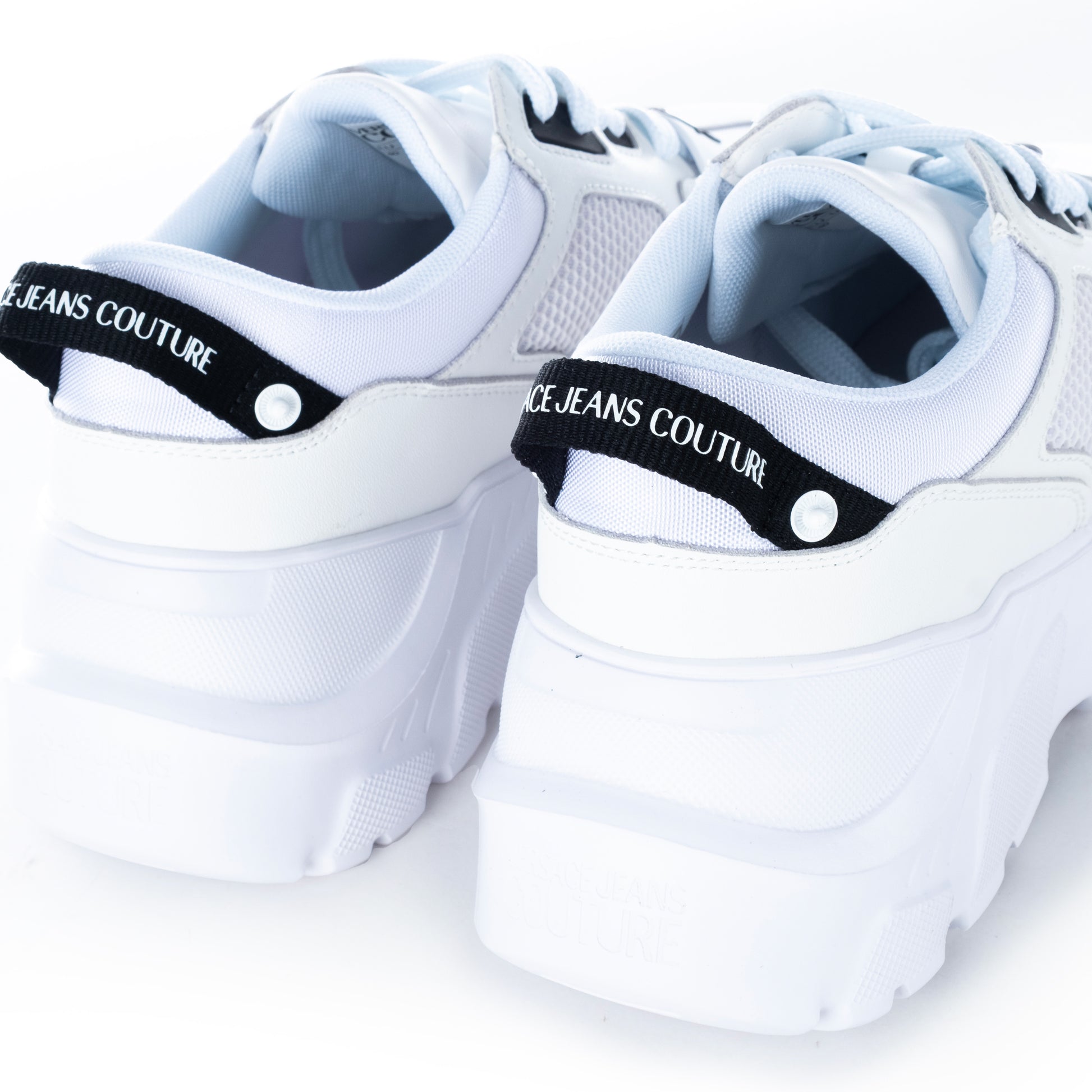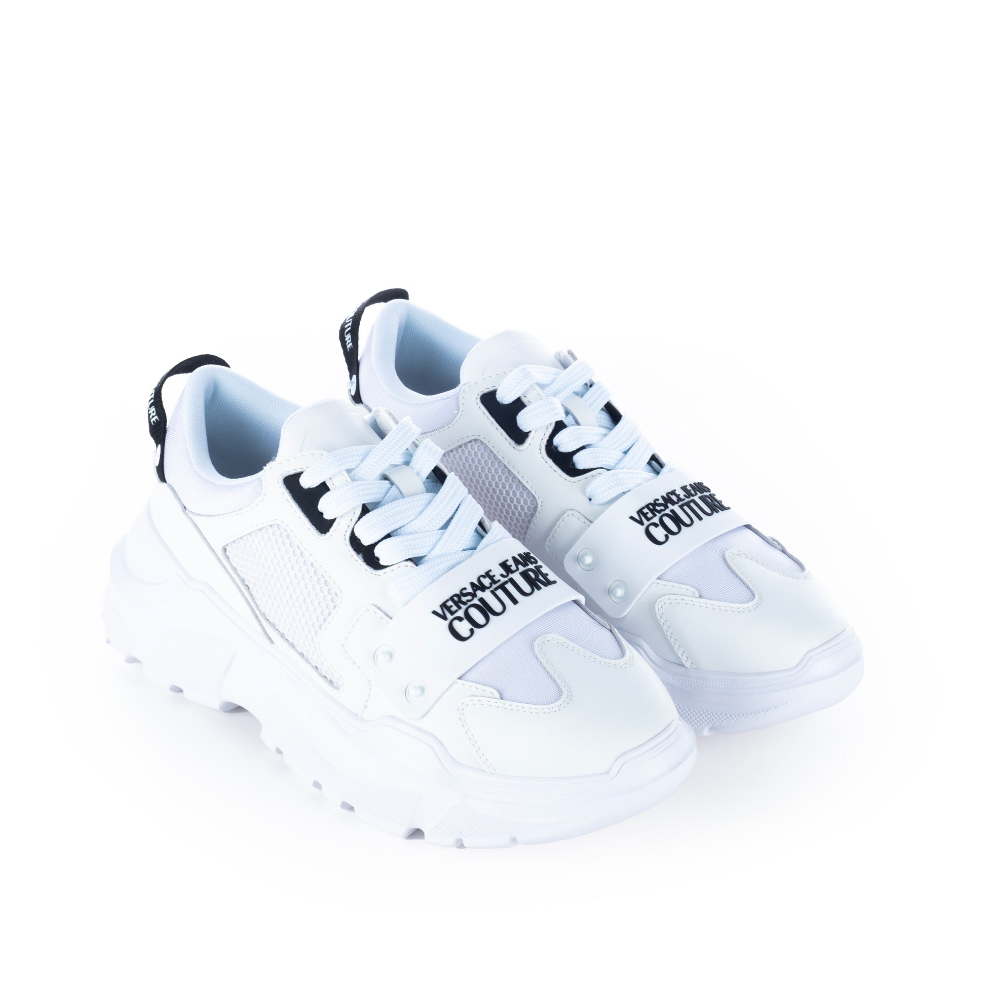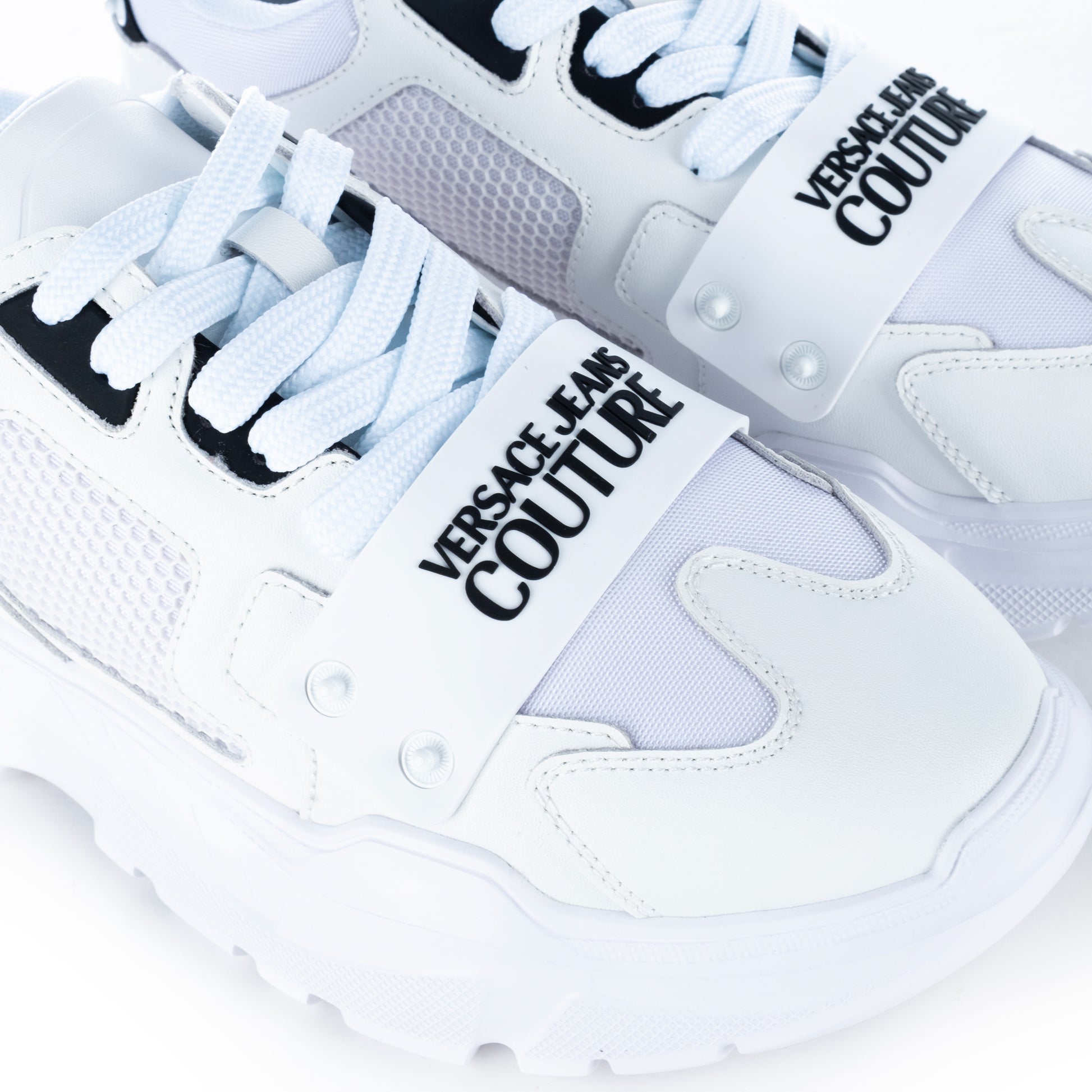 Entre no mundo do estilo sofisticado com estes ténis Versace Couture. Com design contemporâneo, oferecem conforto e elegância. Apresentam um acabamento branco clássico com detalhes em rede e uma sola robusta para maior estabilidade. Construídos com materiais premium, garantem durabilidade e estilo
