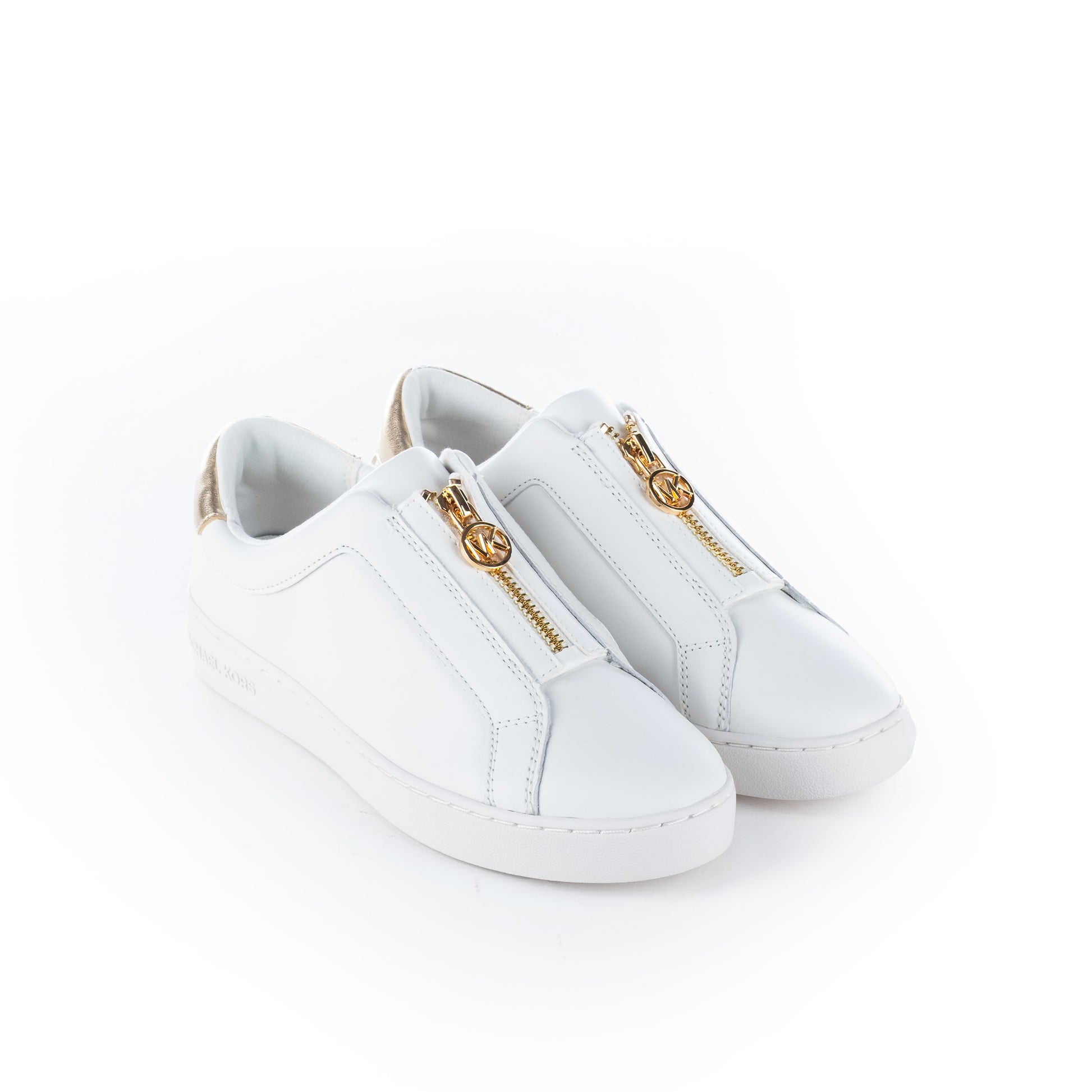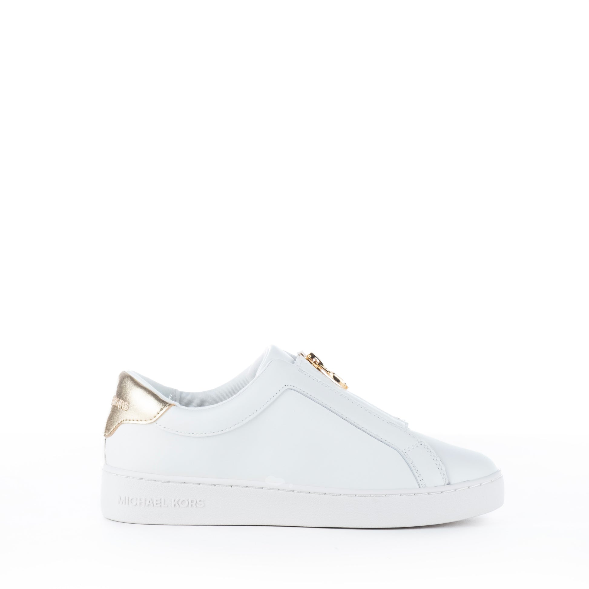 Descobre o conforto e a elegância dos ténis Michael Kors para mulher, ideais para um look moderno. Apresentam exterior em pele branca com detalhe dourado no calcanhar, assegurando um visual sofisticado. Fecho discreto e solado em borracha garantem funcionalidade e estilo